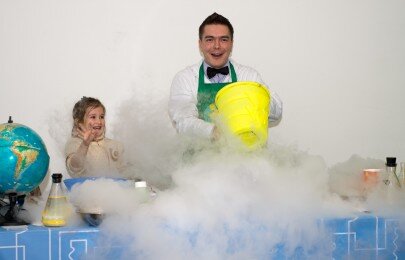 ВОЗДУХОЛОГИЯ – универсальная программа для компании практического любого возраста! Главный герой программы – воздух. Мы исследуем его свойства (это будет очень весело) и воссоздадим атмосферные явления — ветер, дождь, гром! Для этого используем лабораторную посуду, такую как колбы, а еще некоторые неожиданные инструменты, в числе которых есть даже садовый пылесос. Особую зрелищность программе придают эксперименты с замороженным углекислым газом.